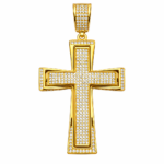 Make a powerful statement of faith and style with this bold Iced Cross Pendant, designed with a modern layered cross and brilliant stone detailing. The clean center cross is framed by rows of diamond-style stones, creating a striking contrast that delivers shine from every angle.
