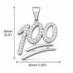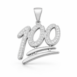 Featuring a sleek polished finish with brilliant iced-out stones set only in the “100”, this pendant delivers the perfect balance of shine and clean design. The smooth, plain bail and underline bars give it a modern, high-end look while keeping it versatile for any outfit.